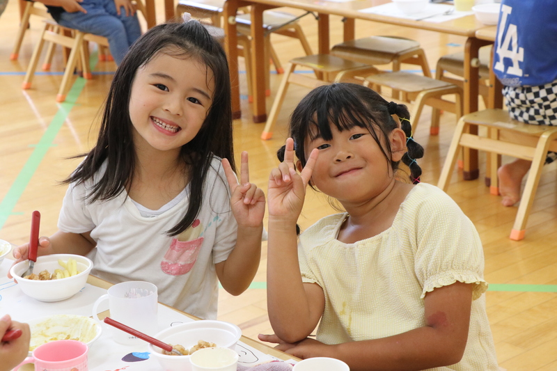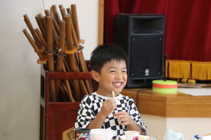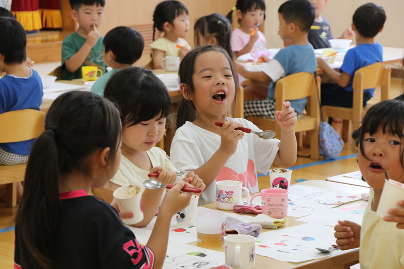 カレー、から揚げ、ポテト、綿菓子、ミニパフェの食べ放題パーティーに、みんな大喜び。おいしいものをたくさん食べて、笑顔いっぱいの楽しい時間を過ごしました。その様子を少しだけご紹介します♪