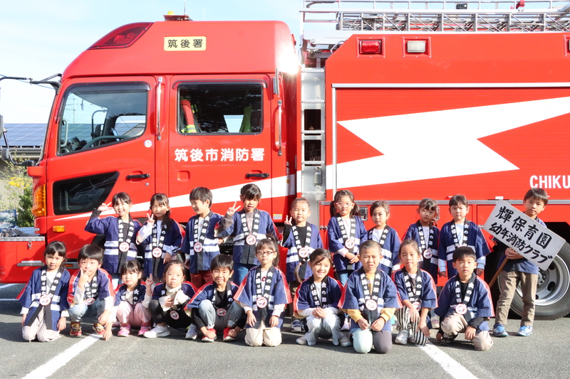 10月30日筑後市幼年消防クラブ大会がサザンクス筑後の大ホールにて開催され、年長さんが参加しました♪消防士さんのお話を聞いたり、はしご車やレスキュー車を見たりして、みんな目をキラキラさせていました。