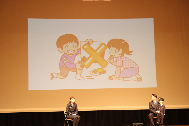 「こどもだけで花火やマッチを使ったりしない!」「風が強いときには花火はしない!」と、学んだ内容を自分の言葉で報告してくれました。楽しく学びながら、防火の大切さをしっかり覚えました。