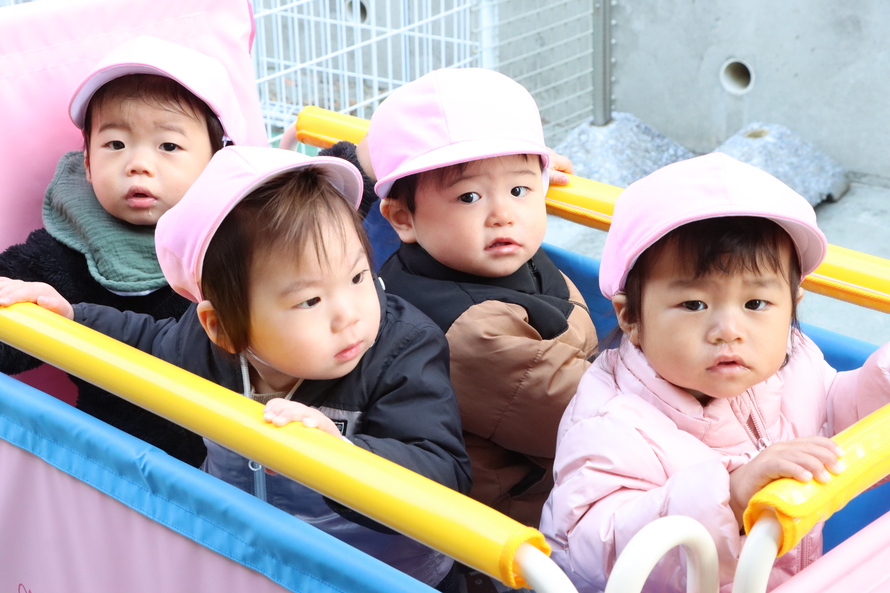 厳しい寒さが続いていますが、今日はぽかぽかと柔らかな日差しが届きました。赤ちゃんクラスのみんなで、近くの公園までトコトコお散歩です。