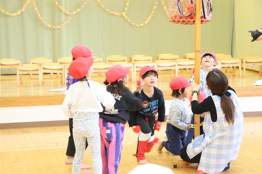 異年齢で交流したゲームでは、年長ひまわり組さんの「凄さ」が光ります。素早い動きや力強さはもちろん、仲間と息の合った抜群のチームワークを見せる姿は、まさにみんなの目標そのもの!